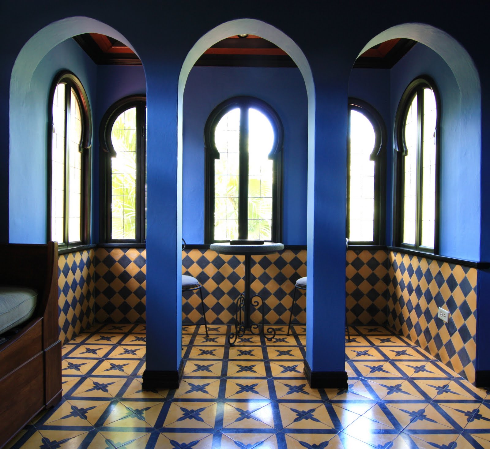 Blue is such a strong color in CR. The pool has this electric blue color so I wanted the kid's room to reflect this vivd color. I love the Moorish windows.